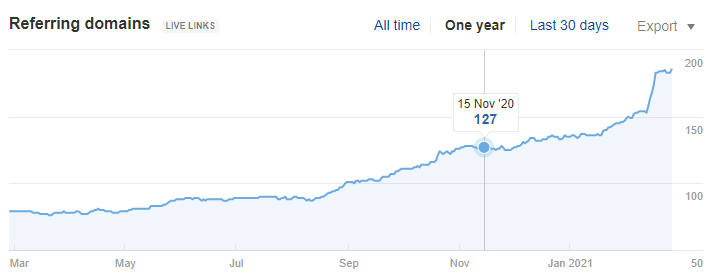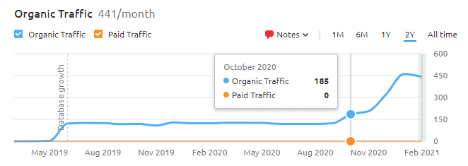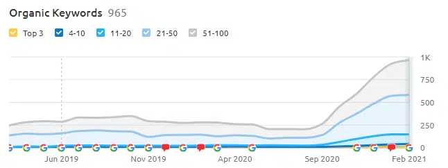 - Achieved an all-time high of 1,300 monthly organic visitors by January 2021.
