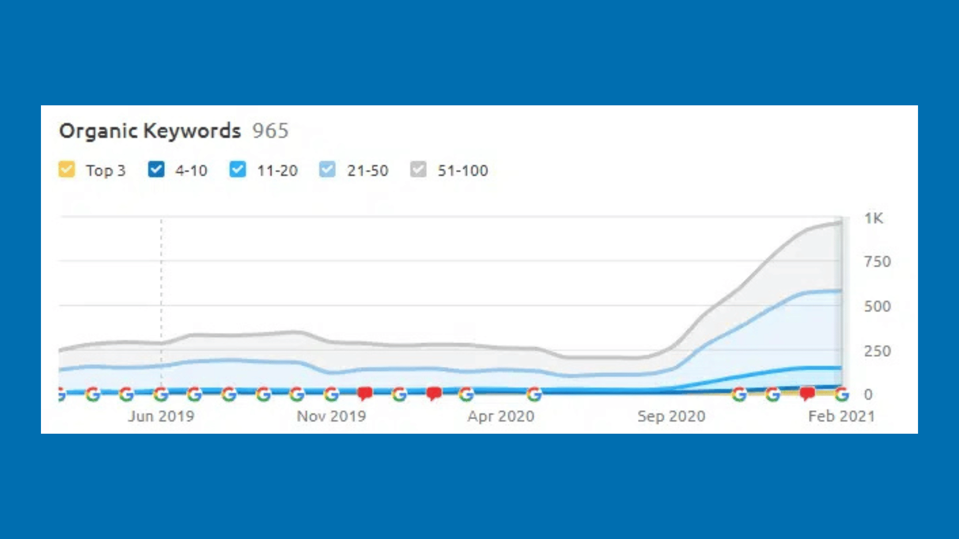 Within weeks, the website showed remarkable improvements, with organic traffic growing from 329 visitors in August 2020 to 1,900 visitors by January 2021—an increase of over 100% in just four months.